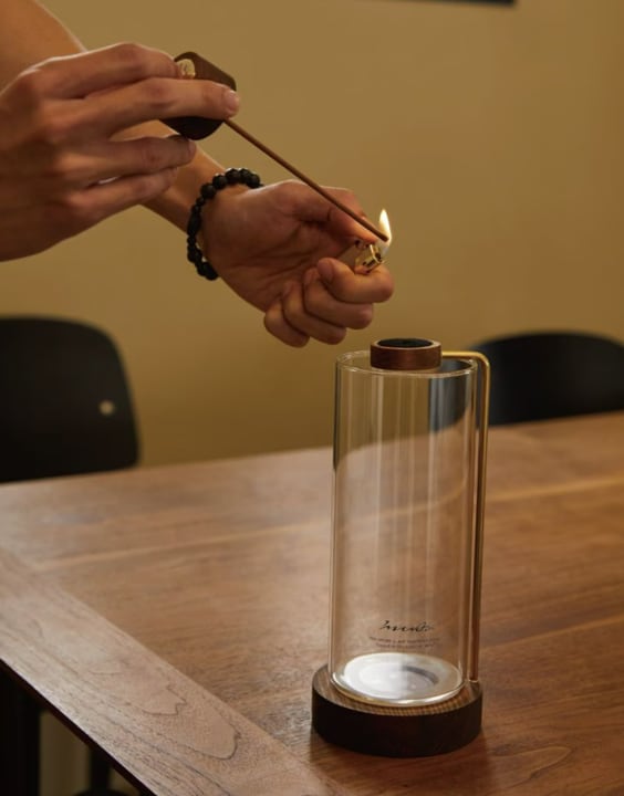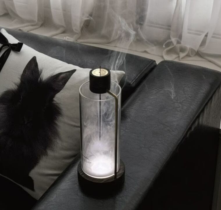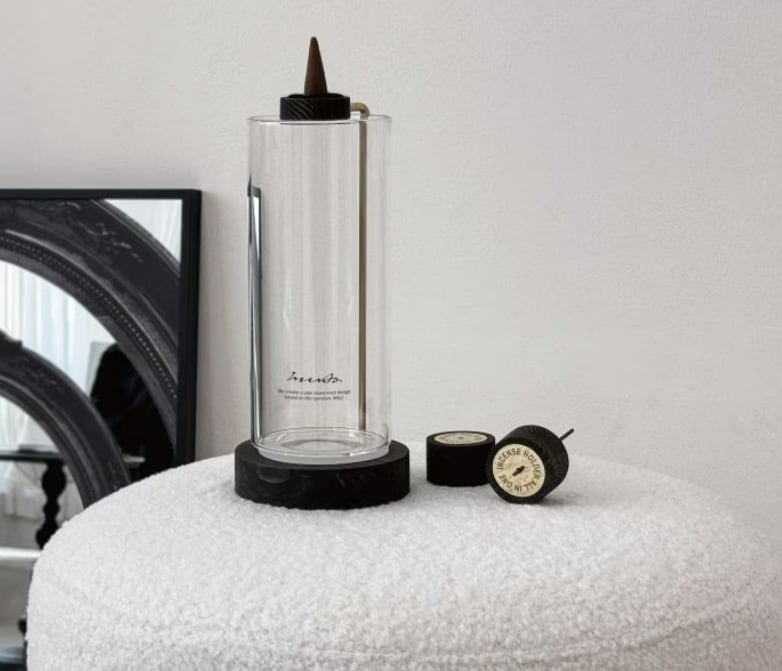 このインセンスホルダーは、洗練されたオールインワンガラス容器に収められたスタイリッシュなアイテムです。