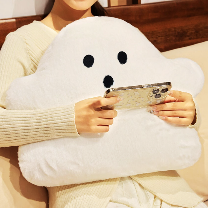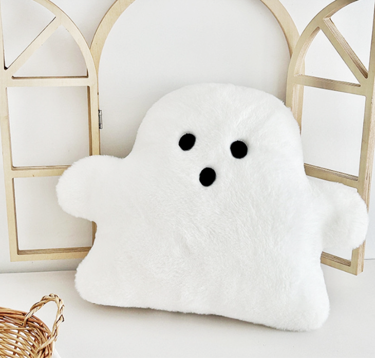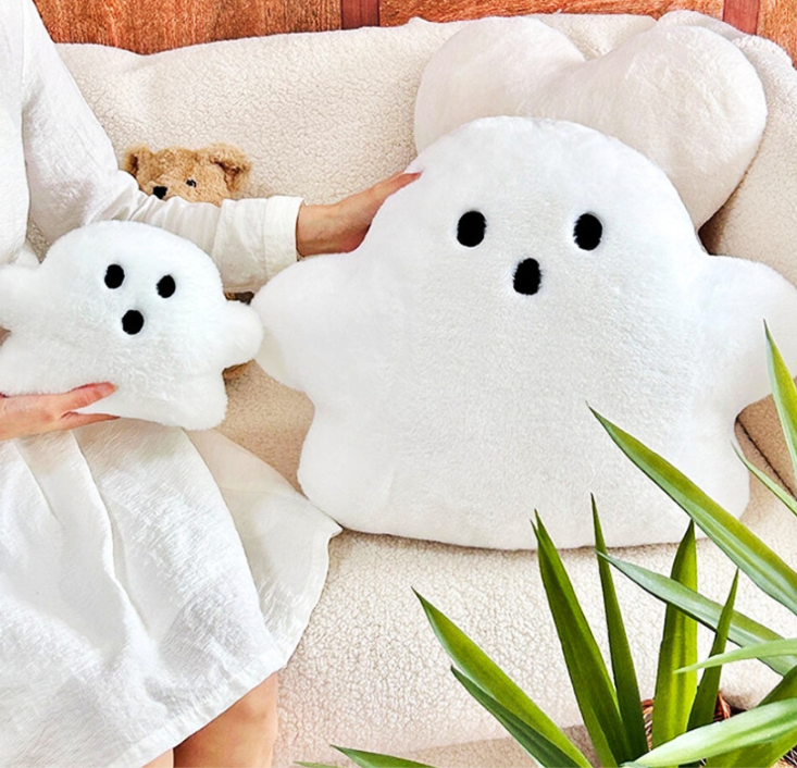 ふわふわの肌触りが心地よい、ユニークなおばけ型ソファクッション。