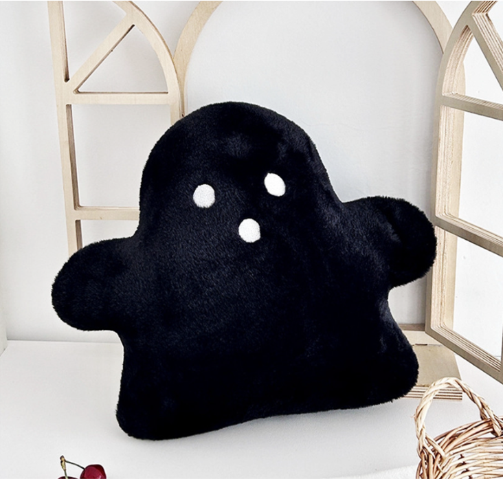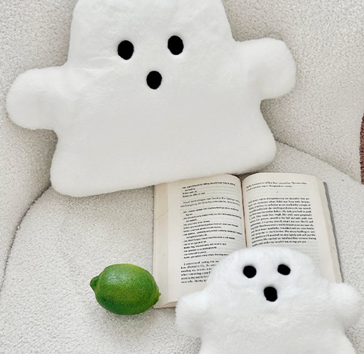ふわふわの肌触りが心地よい、ユニークなおばけ型ソファクッション。
