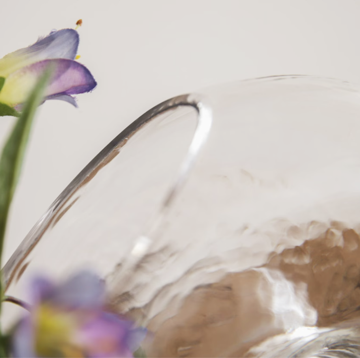 ・素材:透明ガラスが花の美しさを引き立て、軽やかな雰囲気を演出します。