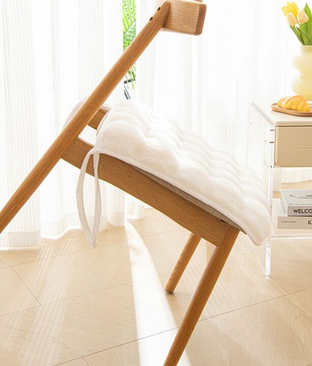 ふわふわの肌触りとおしゃれなデザインを兼ね備えた、紐付きもこもこクッション座布団。