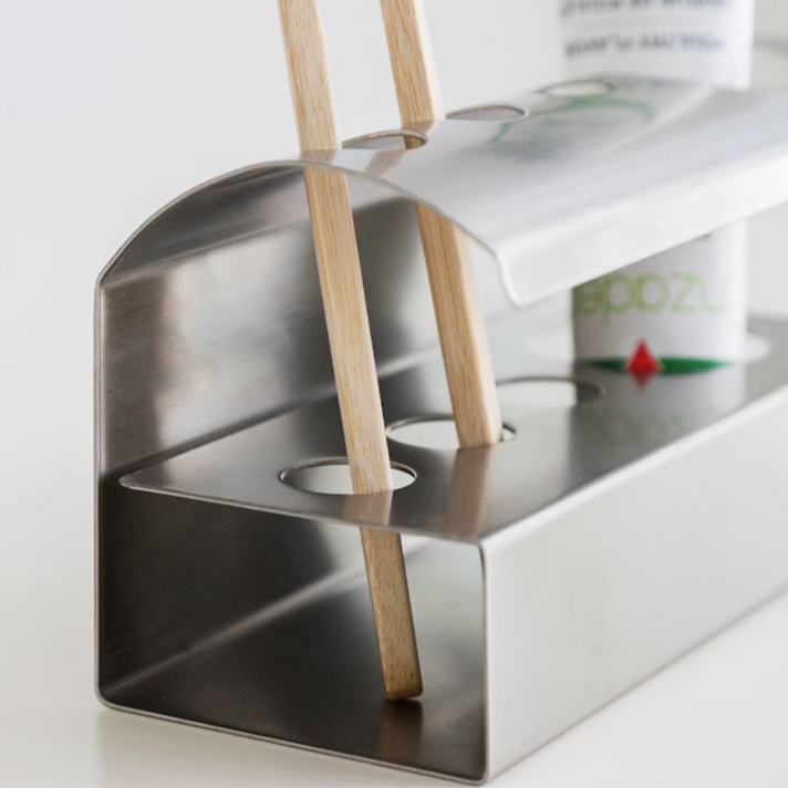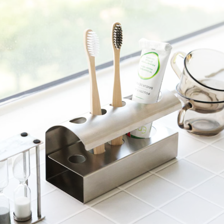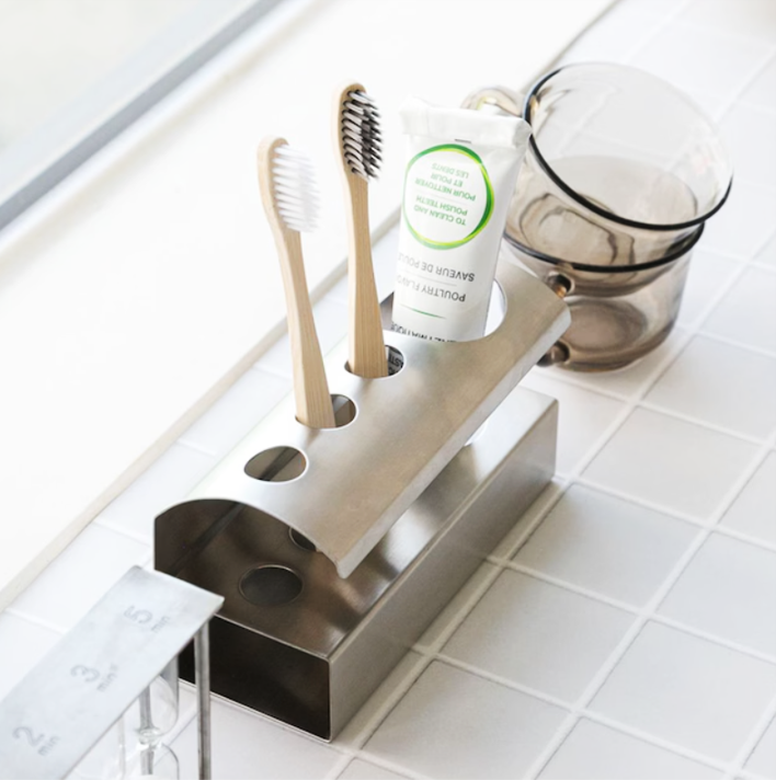洗面空間をすっきり整える、ステンレス製の歯ブラシ&歯磨き粉ホルダー。