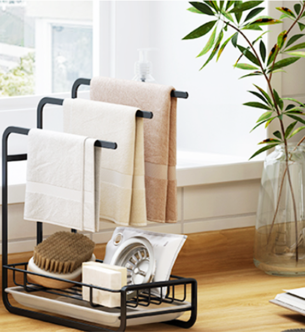 ふきん掛け・乾燥ラック・水切りトレイとして使える実用的な設計です。