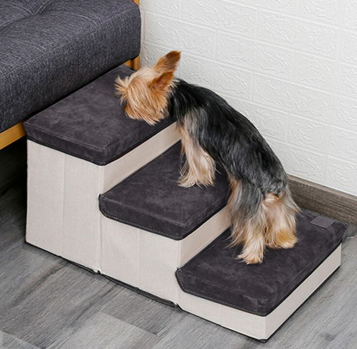 小型犬や猫の昇り降りをサポートする、収納付き3段ペットステップ階段。