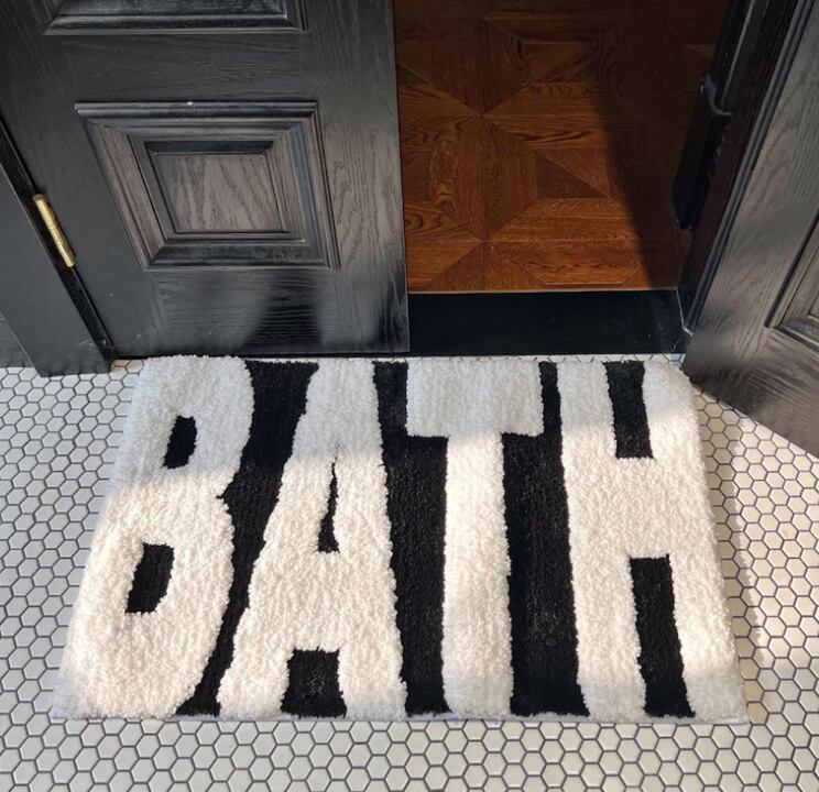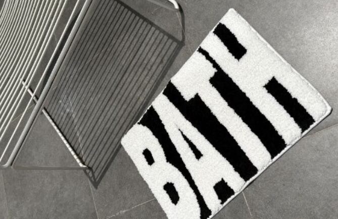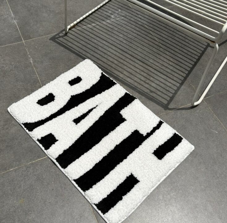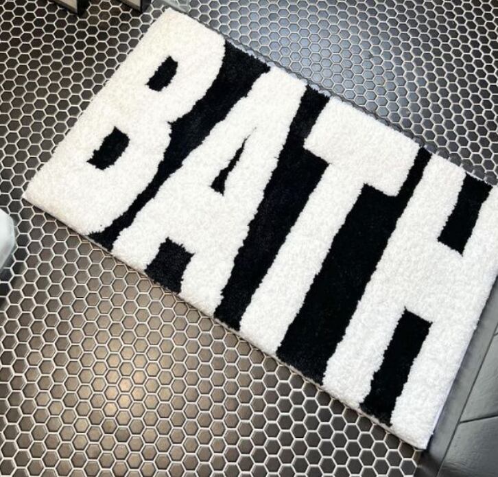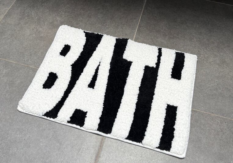 シンプルで洗練された「BATH」ロゴが印象的な、おしゃれモダンな床マット。