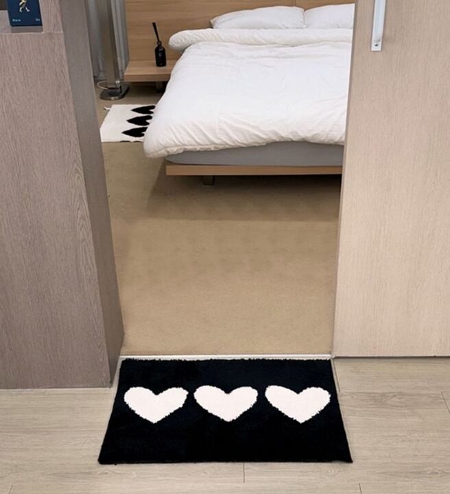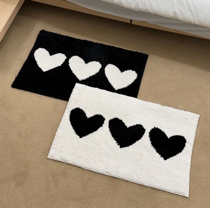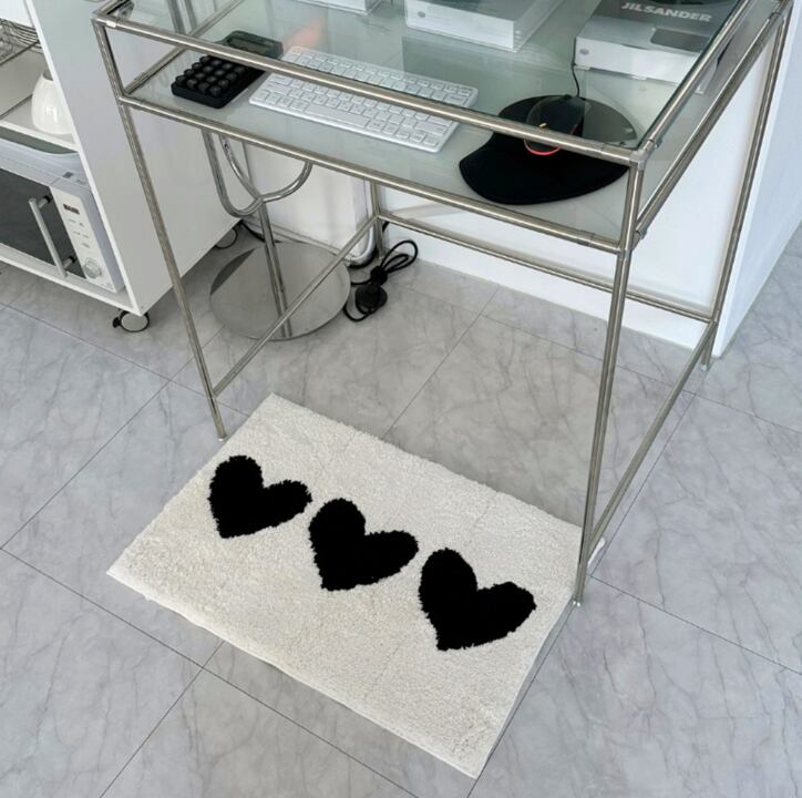 この白黒ハートのミニラグで、空間にかわいさと快適さを一緒に取り入れてみませんか。