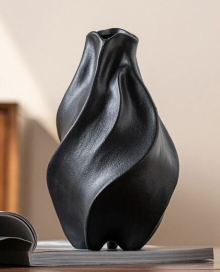 白と黒のコントラストが美しい、ツイストデザインのセラミック花瓶。
