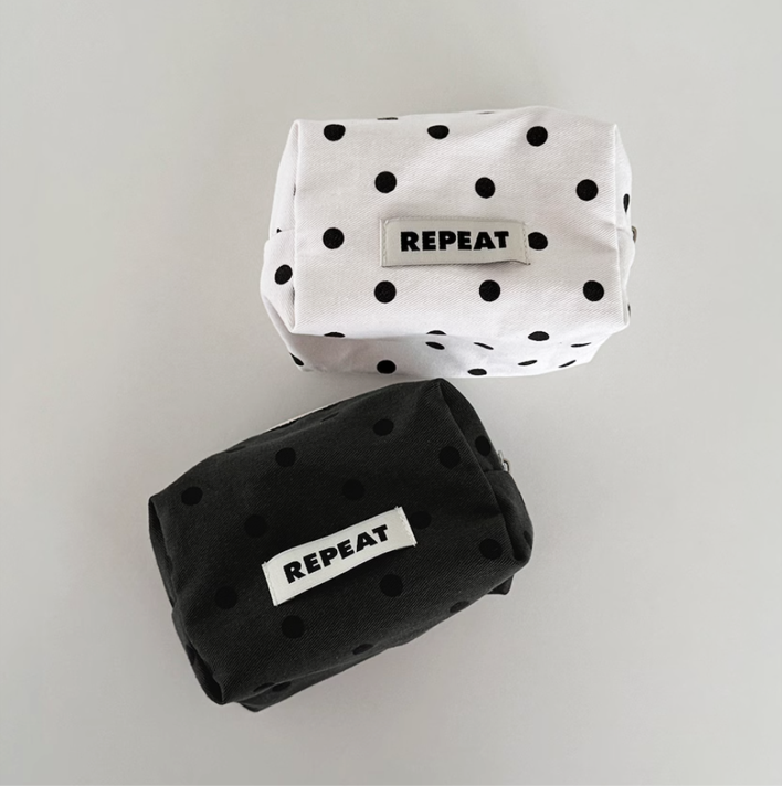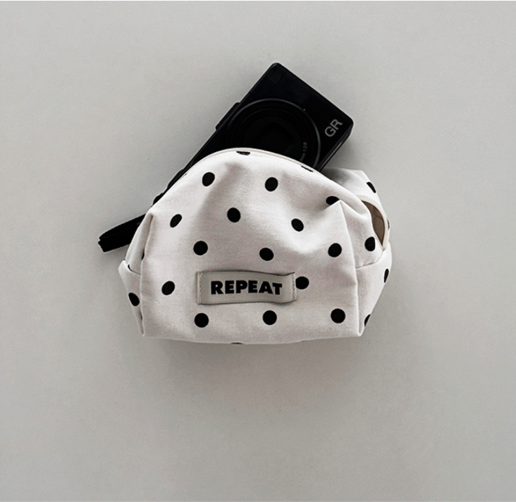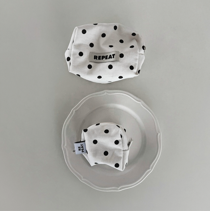 水玉模様がかわいらしい、ホワイト&グレーの2カラー展開ポーチ。