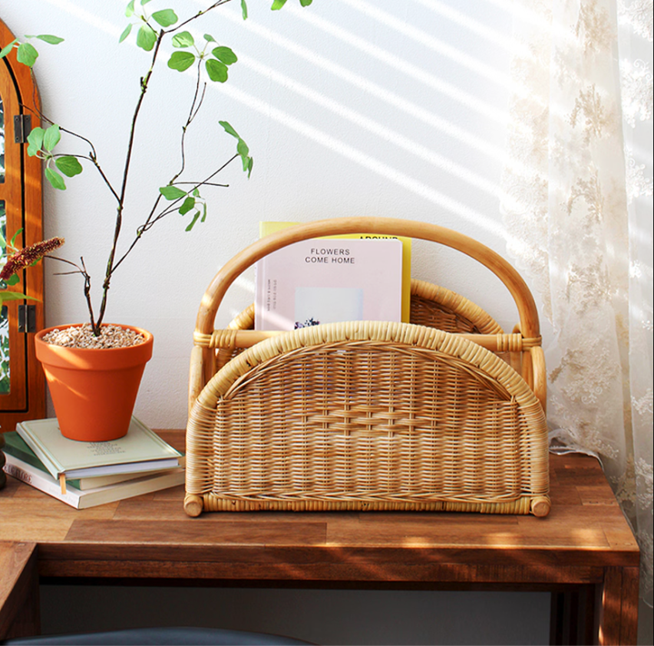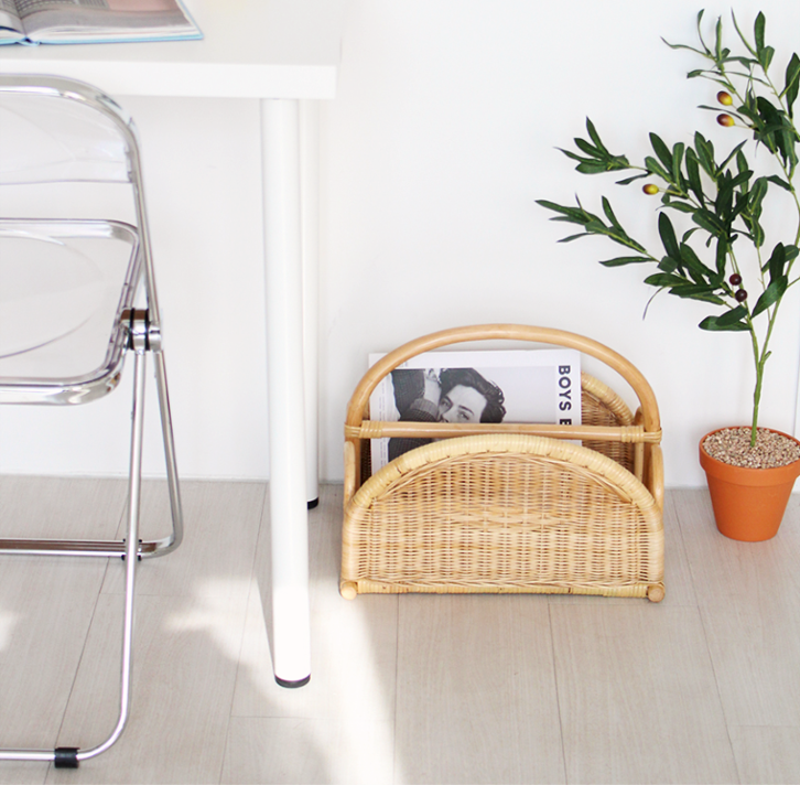 ナチュラルなラタン素材が魅力の、アーチ型マガジンラック。