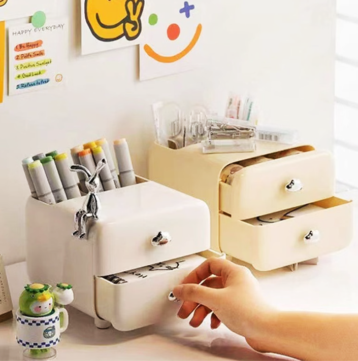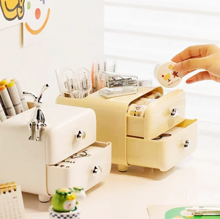 ・一体型設計:引き出しとペン立てが一体になった構造で、省スペースかつ効率的に整理できます。