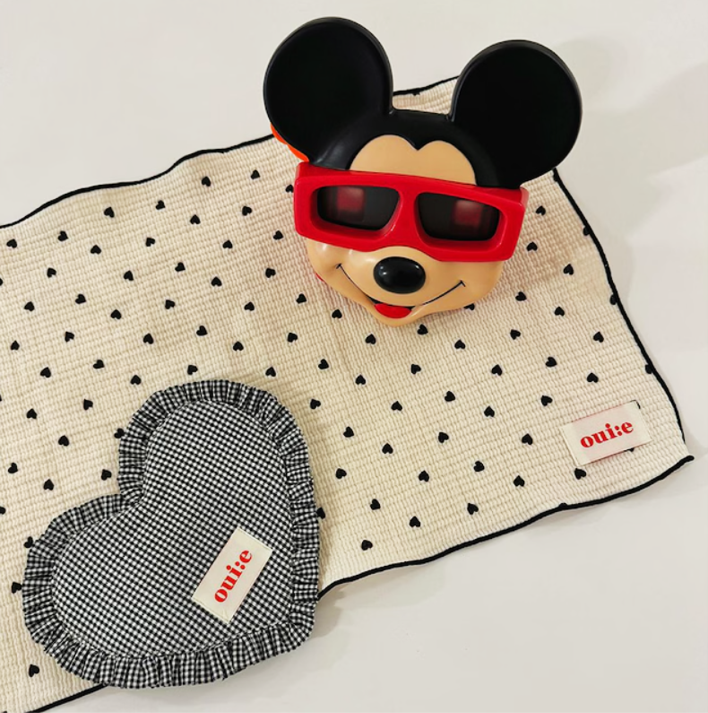 ・デザイン:ハート型フリルとギンガムチェック柄が、かわいらしさとレトロ感を演出します。