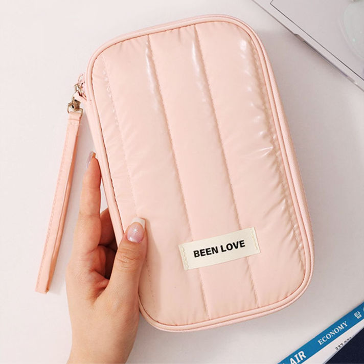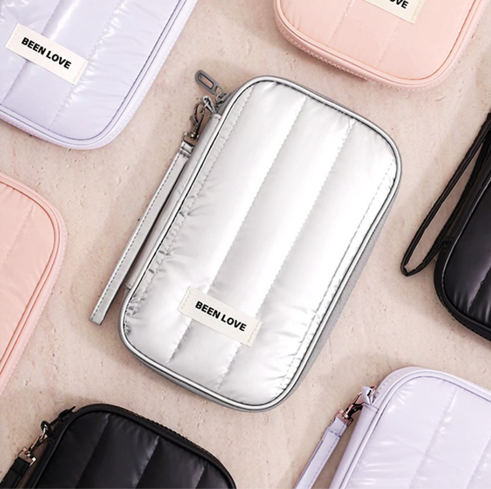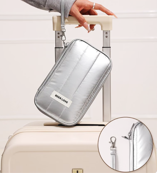 海外旅行や外出時に便利な、ストラップ付き多機能ジッパーポーチ。