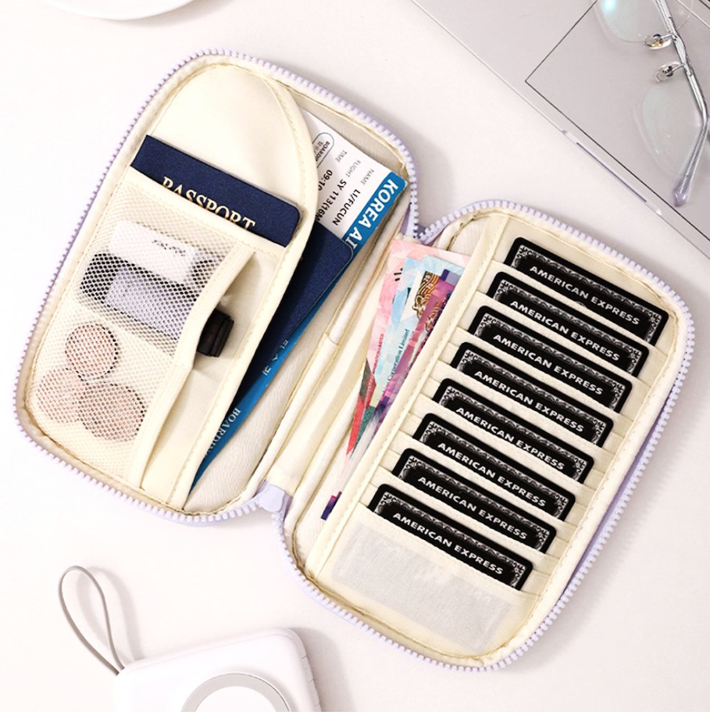 パスポート・チケット・カード・紙幣・コインまで、すっきり収納できる設計です。