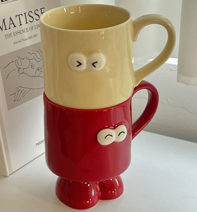 ユニークな表情をした、遊び心たっぷりの顔デザインマグカップ。