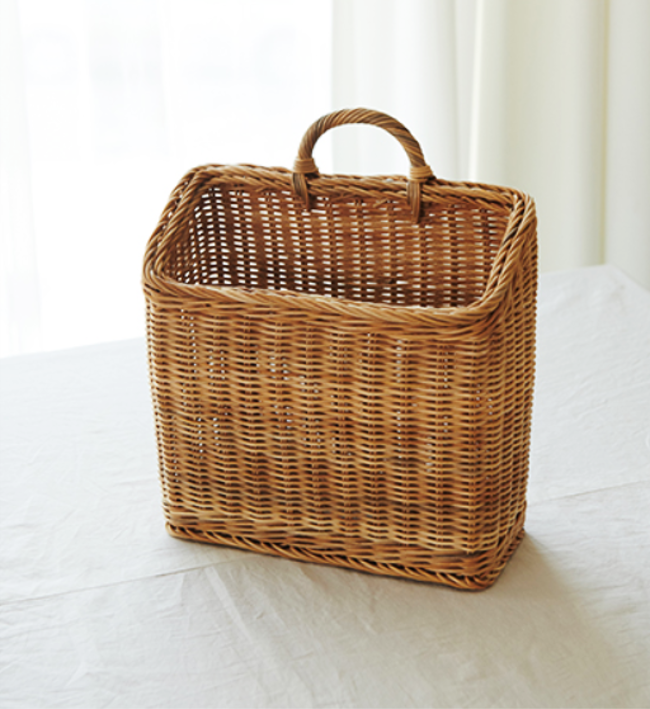 ナチュラルな風合いが魅力の、ラタン素材の壁掛けマガジンラック。