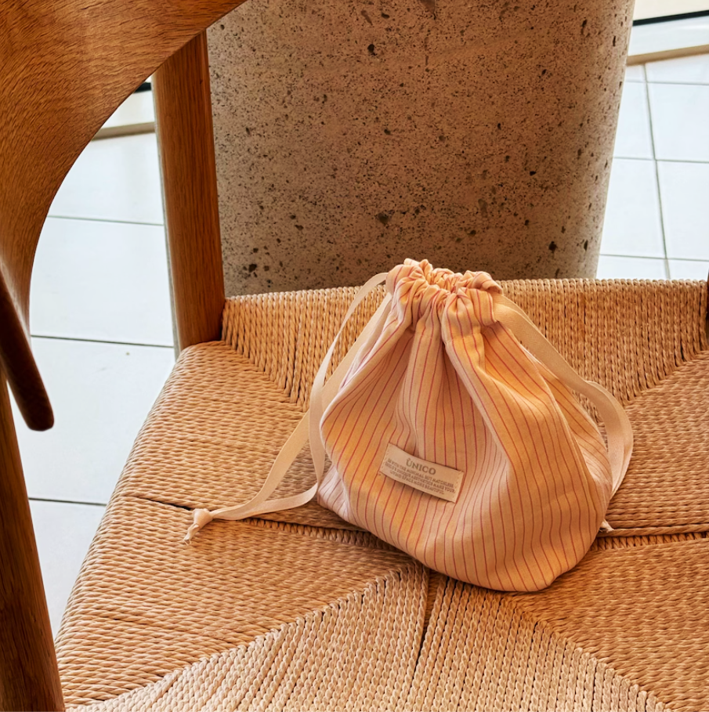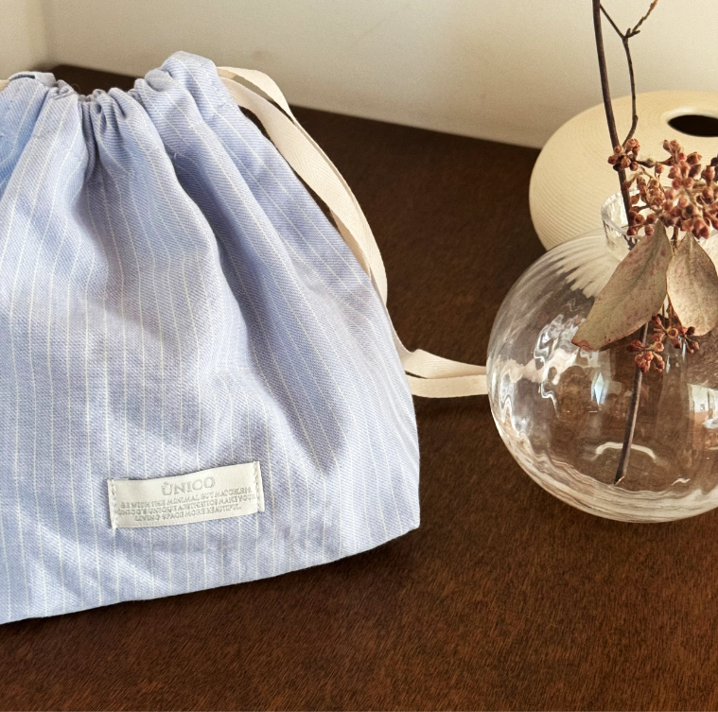 ストライプ柄が爽やかな、ミニサイズの巾着ポーチ。