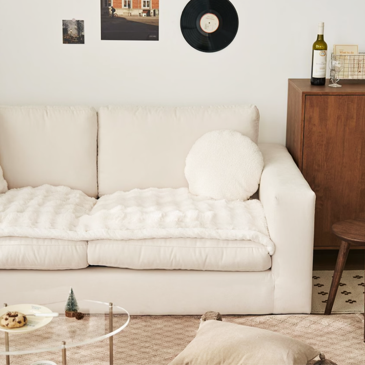 長毛の極細糸で仕上げた、ふわふわ質感のソファパッド。
