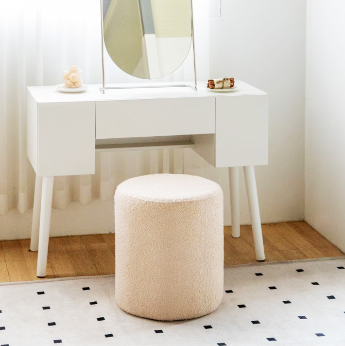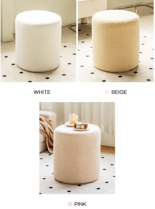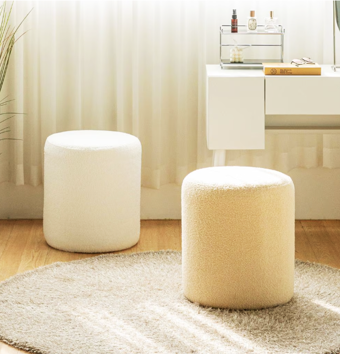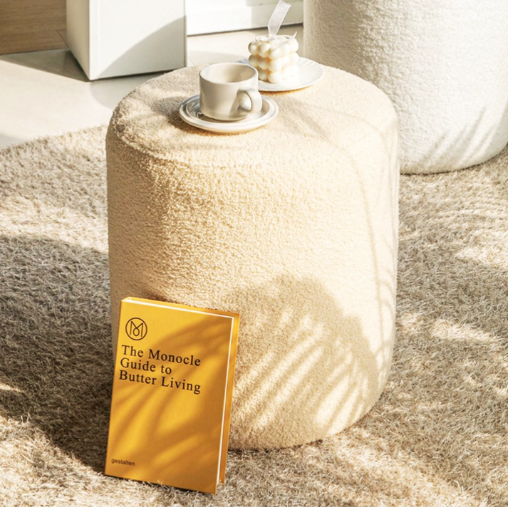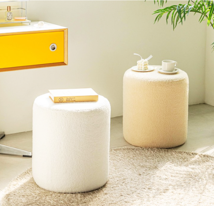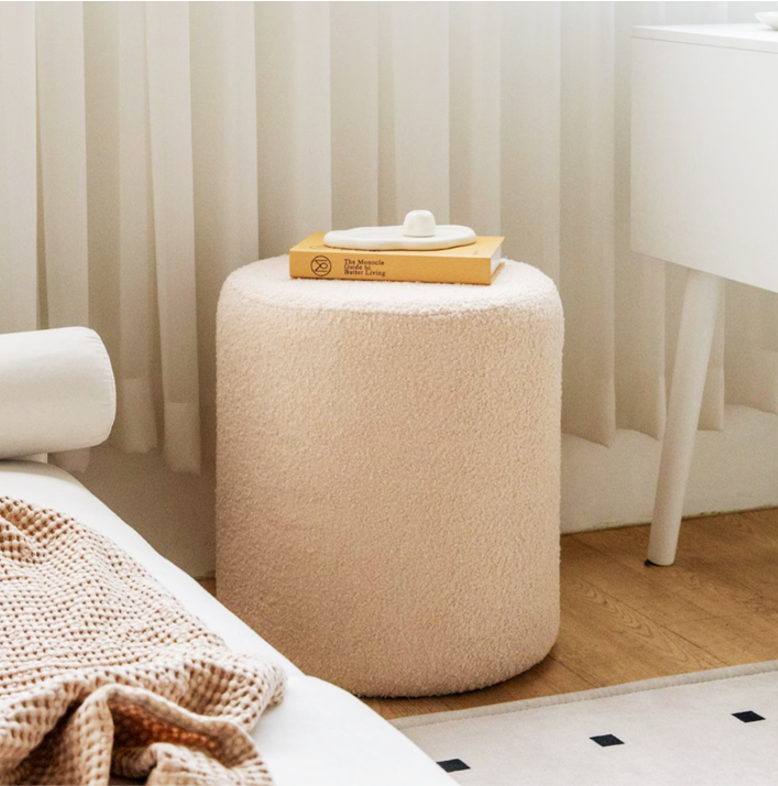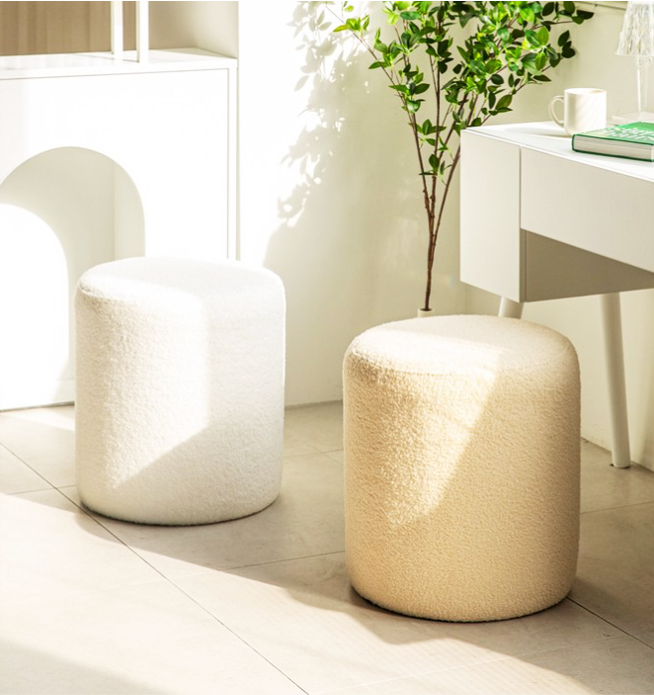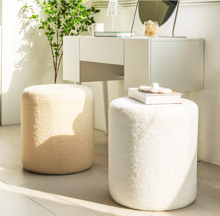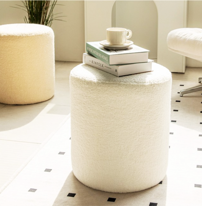 ふわふわのブークレ生地が心地よい、丸型のスツール。