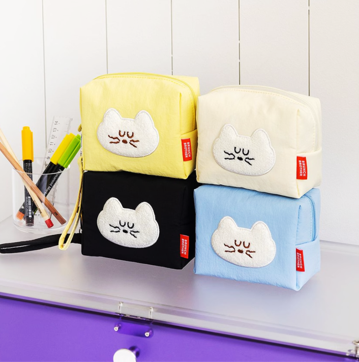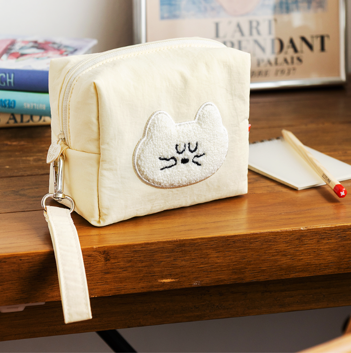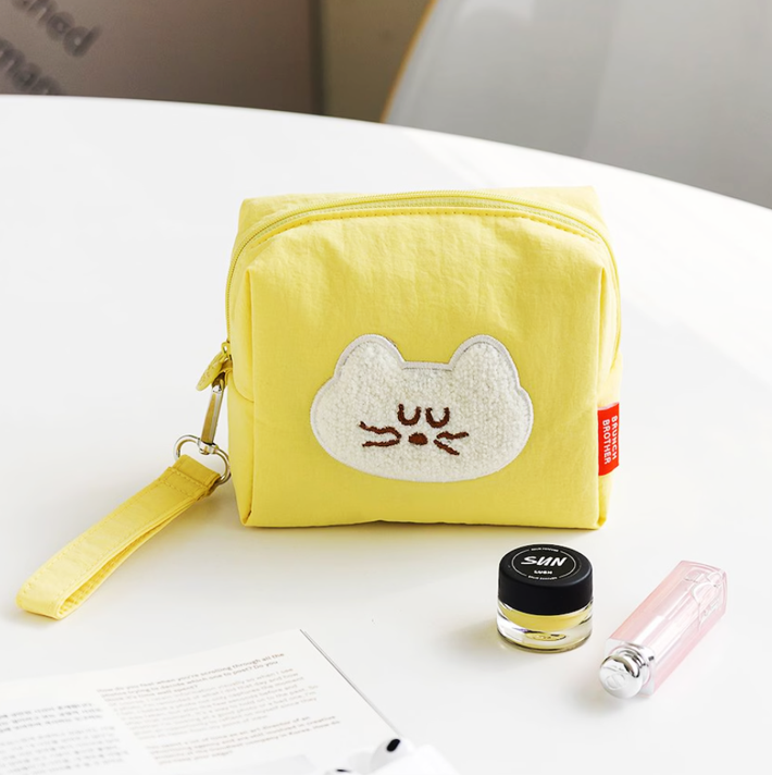 韓国雑貨 スクエアポーチ 猫 メイク小物入れ 収納 ストラップ付き 4カラー