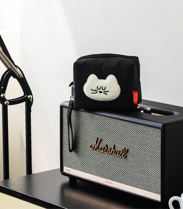 猫のシルエットが愛らしい、ふわっと抱きしめたくなるポーチ。