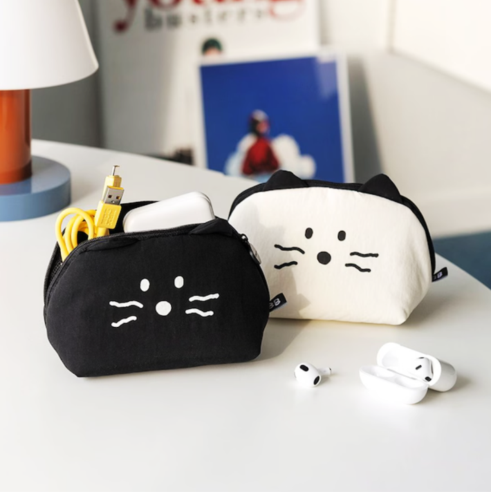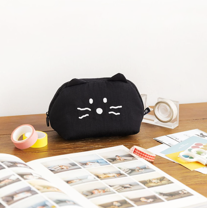 韓国雑貨 ソフトポーチ 猫 化粧ポーチ 小物入れ 収納 かわいい 2カラー