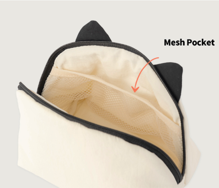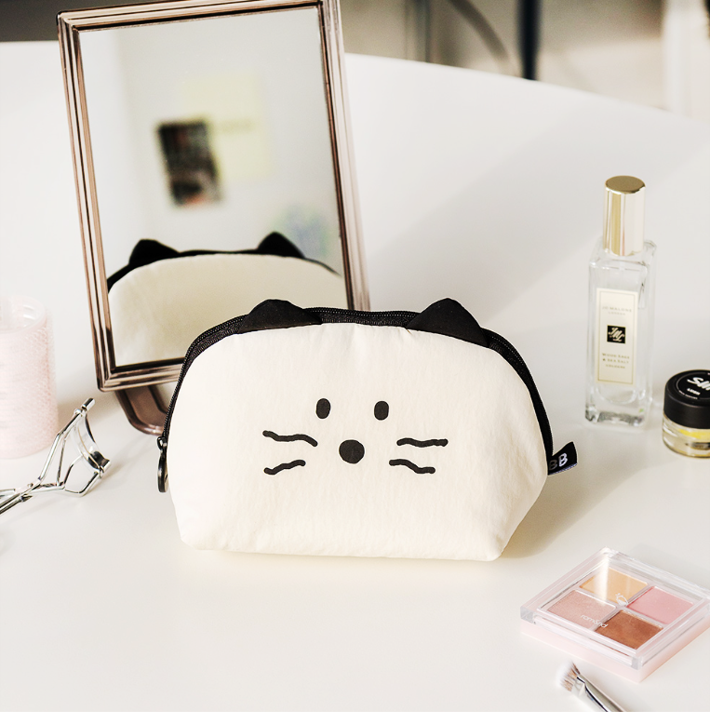 立体的な猫耳が愛らしい、ソフトポーチ。 ナイロン素材で軽く、外出や旅行にもぴったりです。