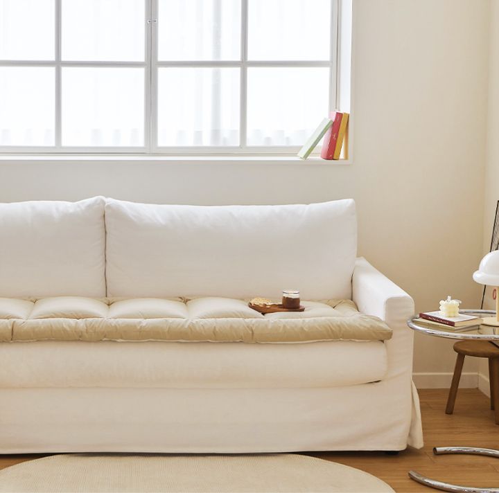ふわふわの7cm厚で座り心地抜群、抗菌加工付きのソファパッド。