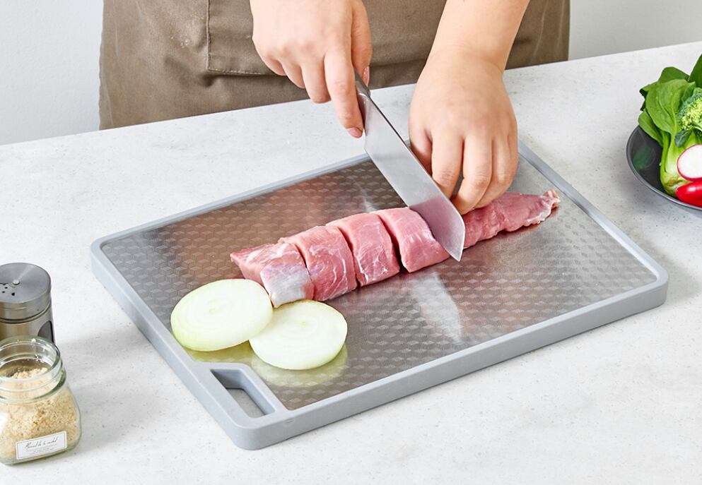 ・滑り止め加工:ステンレス面に滑り止めが施され、安定した包丁使いをサポート。