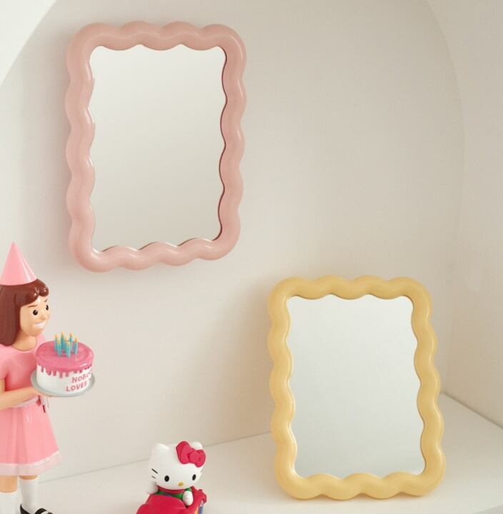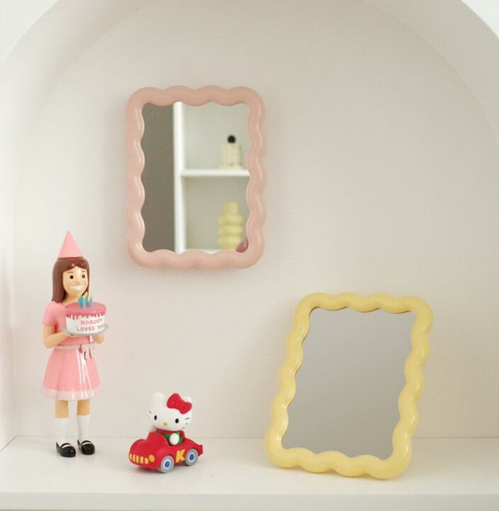 韓国雑貨 ウェーブミラー 壁掛け&卓上 もこもこ かわいいモダン
