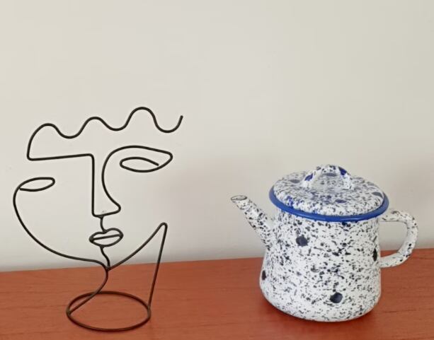 線描きの肖像画をモチーフにした、鉄製の顔オブジェです。
