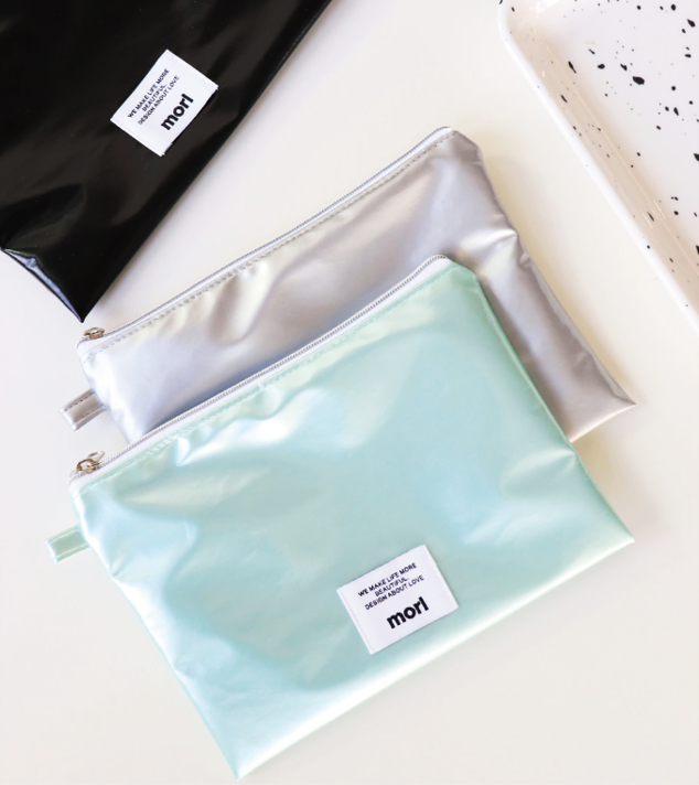 韓国雑貨 フラットポーチ エナメル 光沢 化粧品 小物入れ 収納 Mサイズ 3カラー