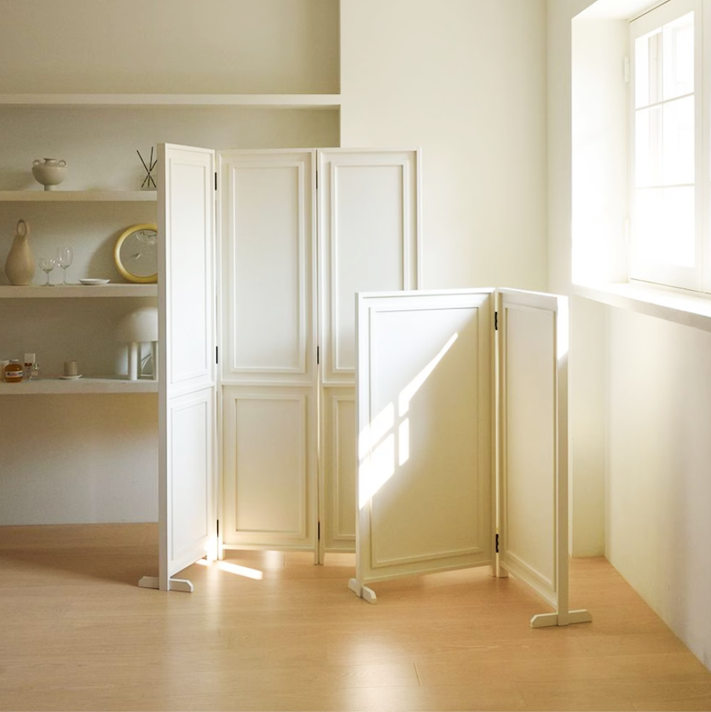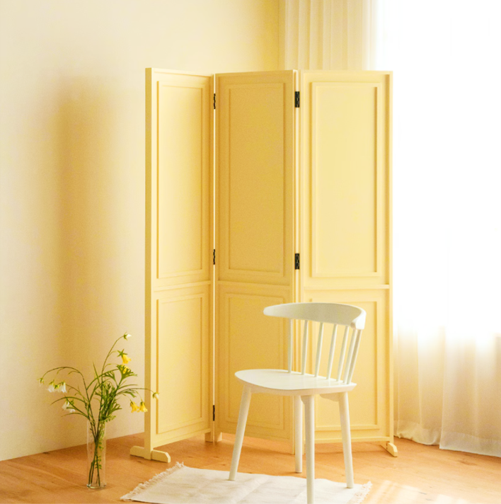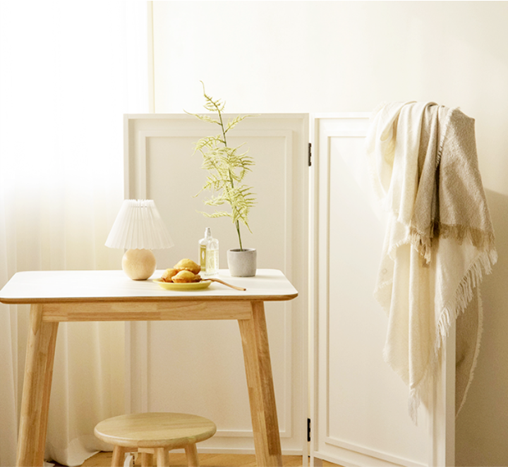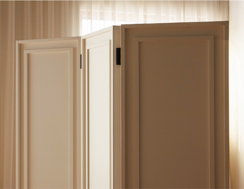 空間をやさしく仕切る、天然木の折り畳み式パーティション。