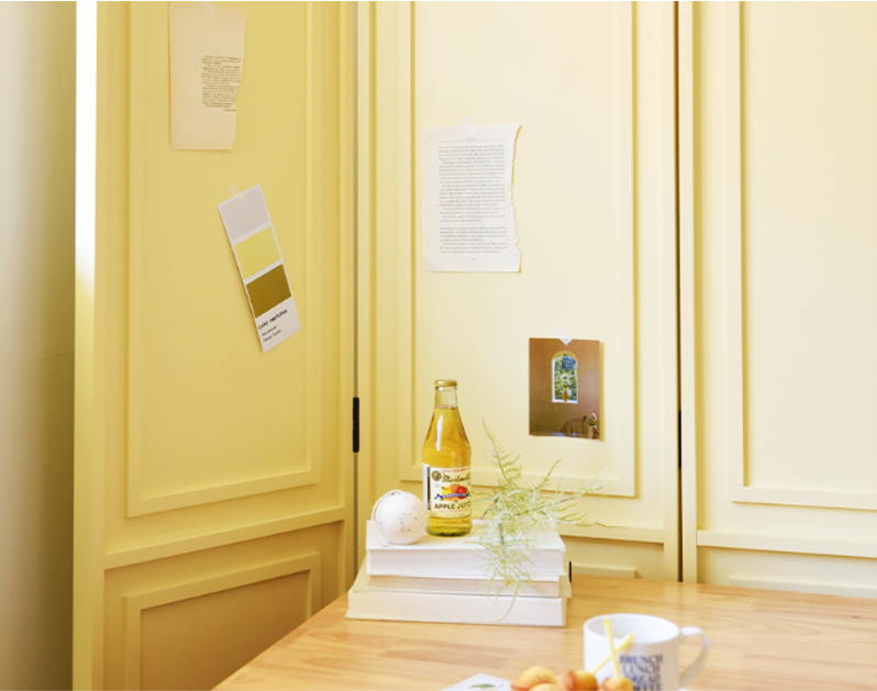 ・デザイン:ウェインスコティング風のモールディングが、空間に上品さをプラスします。