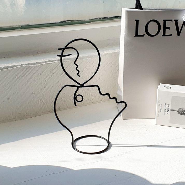 韓国雑貨 手書き顔オブジェ ワイヤー 北欧風 モダン インテリア Lサイズ