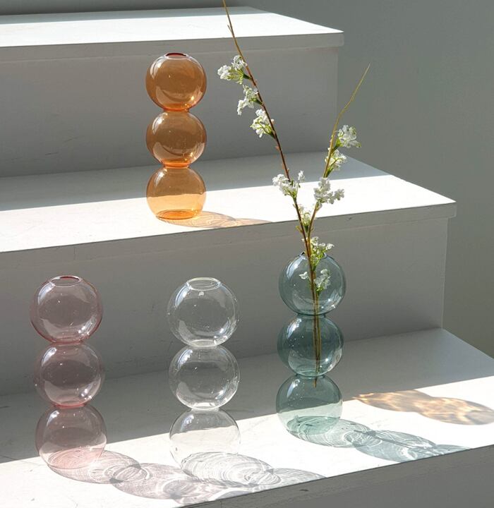 韓国雑貨 バブル水玉花瓶 透明 丸みデザイン かわいい おしゃれ