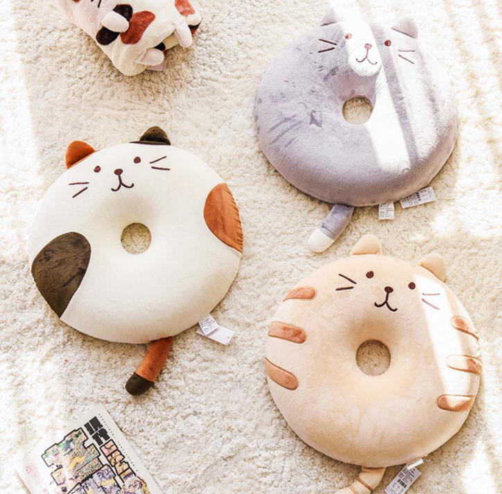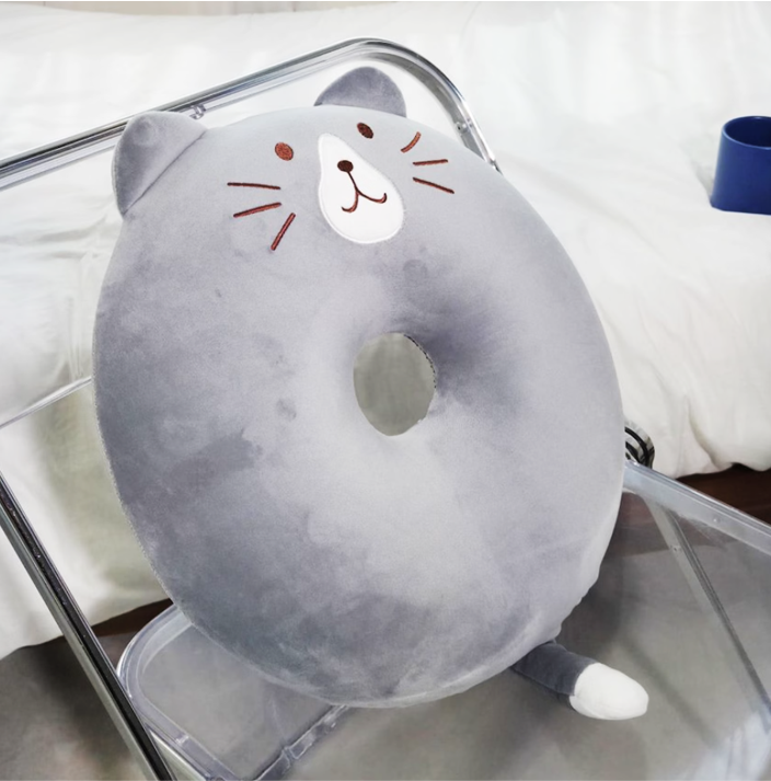 猫モチーフがかわいい、ドーナツ型の低反発円座クッション。
