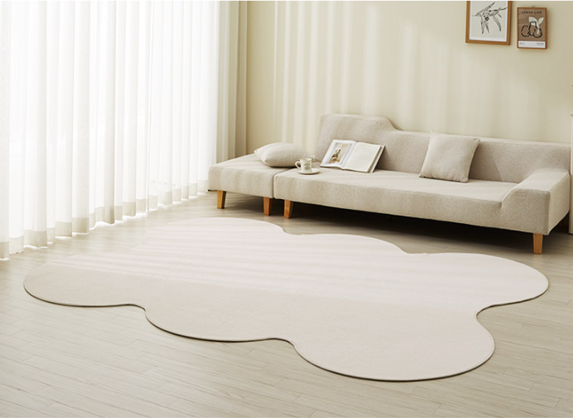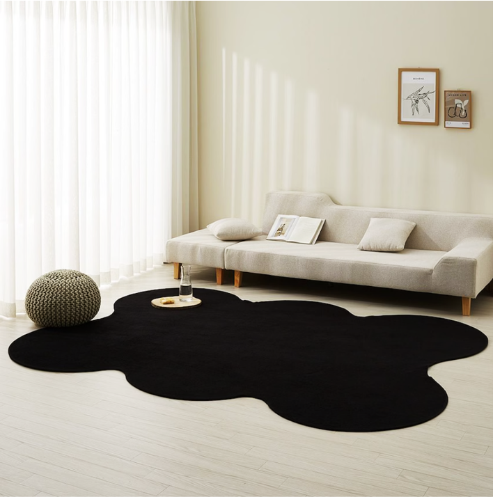 ユニークな曲線フォルムが目を引く、非定型デザインのラグ。