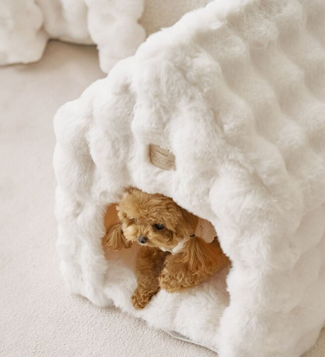 ふわふわ素材が魅力の、もこもこペットハウスです。