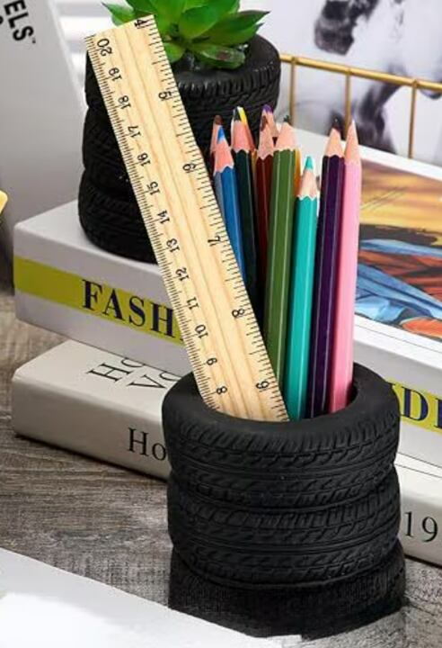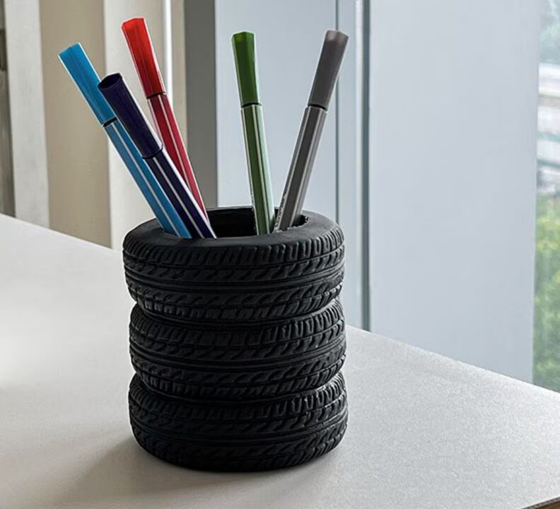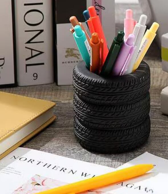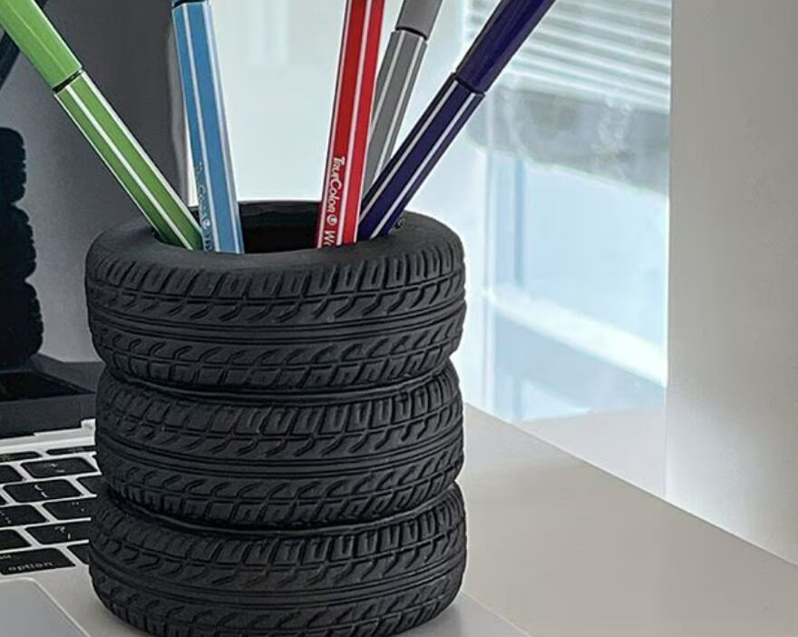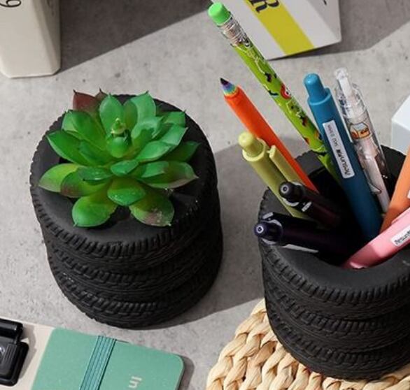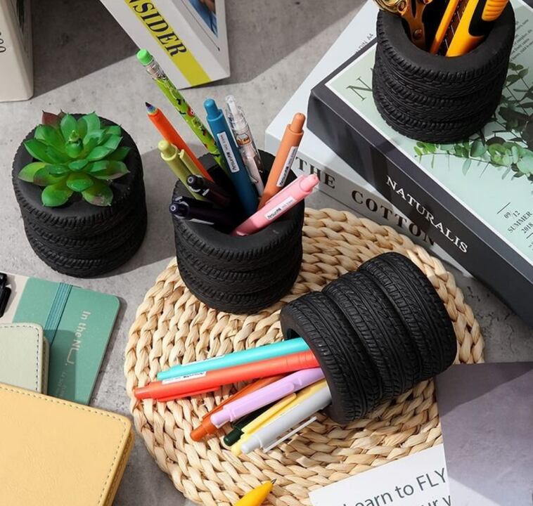 デスク周りを楽しく整理できる、タイヤ型のユニークな小物入れ。