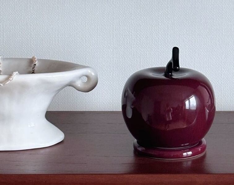 かわいらしいリンゴ型の小物入れで、収納とインテリアを両立。