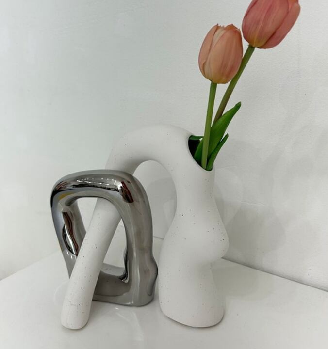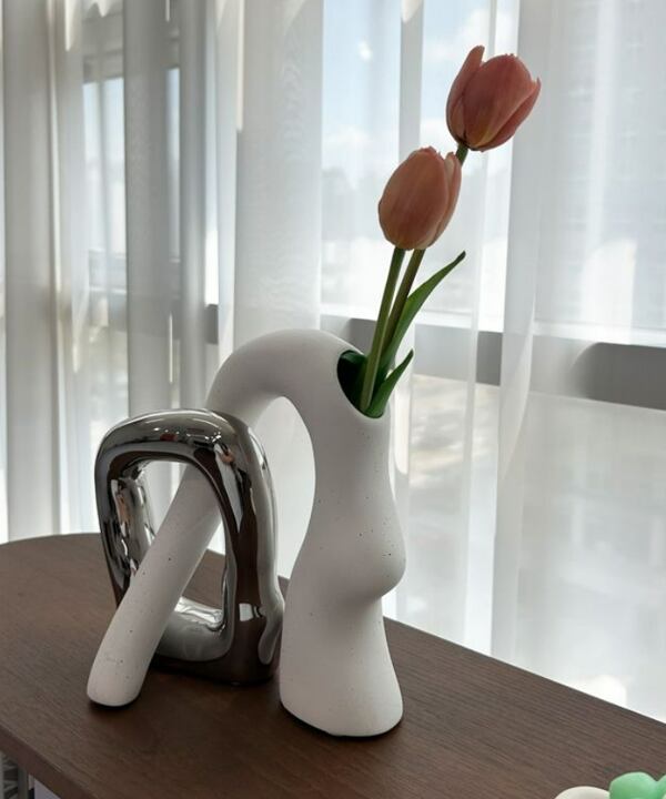 空間に感性とモダンな美しさを添える、セラミック製のアート花瓶です。
