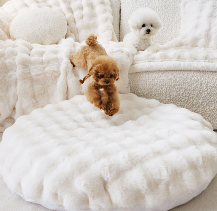 ・起毛デザインの柔らかさ: ラテクリームのようなふわふわした素材がペットを快適に包みます。