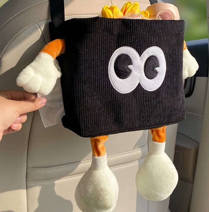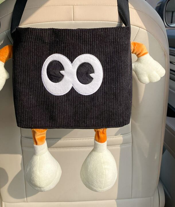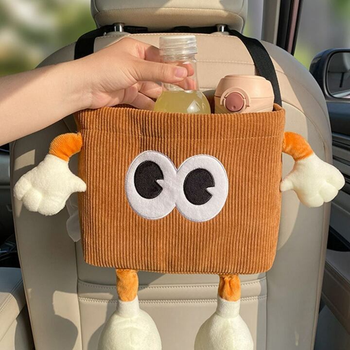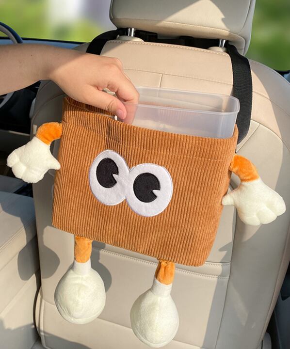 車の背もたれに掛けるだけで使える、便利でかわいい小物入れ収納です。