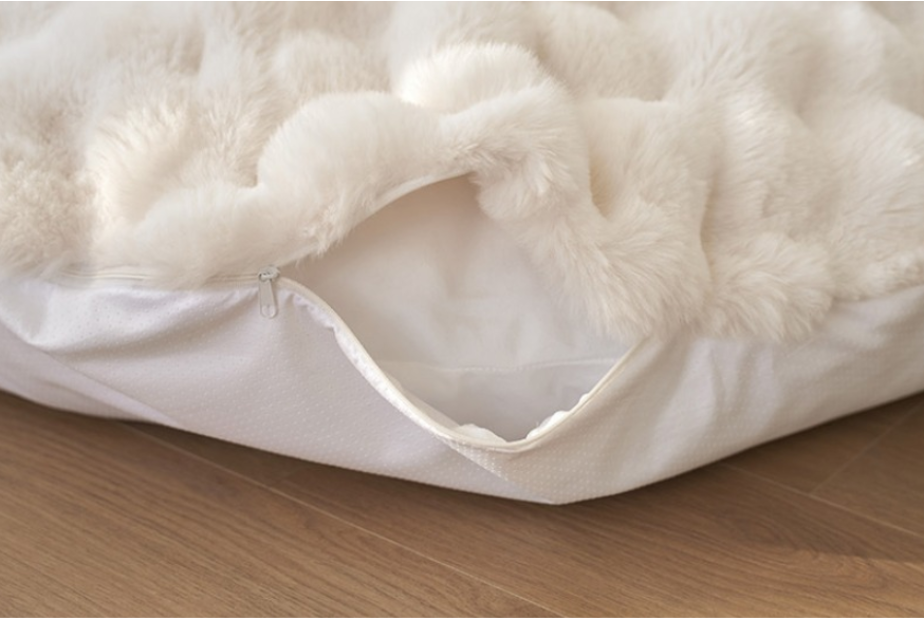 裏面は滑り止め生地で安全性を高め、側面のジッパーでカバーを簡単に取り外して洗濯できる便利さを兼ね備えています。