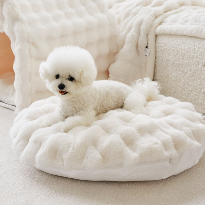 ・起毛デザインの柔らかさ: ラテクリームのようなふわふわした素材がペットを快適に包みます。