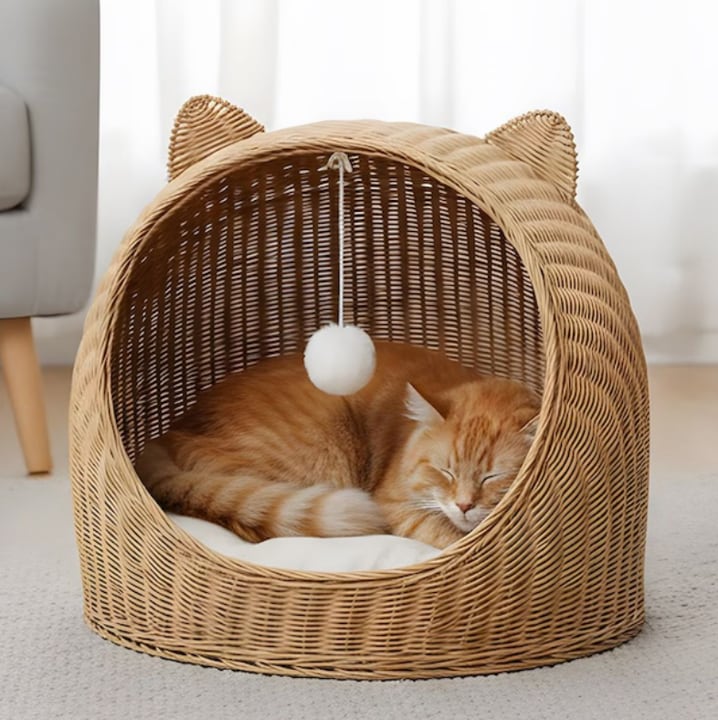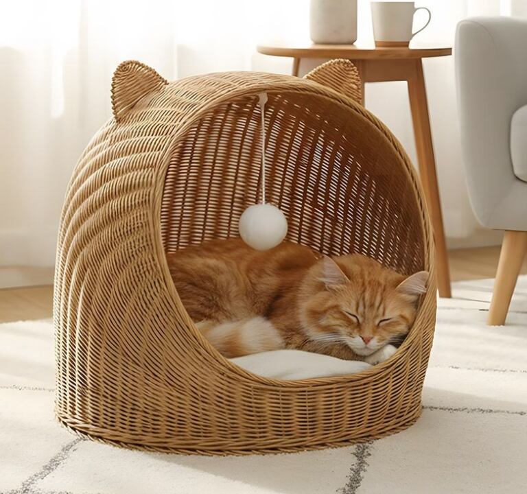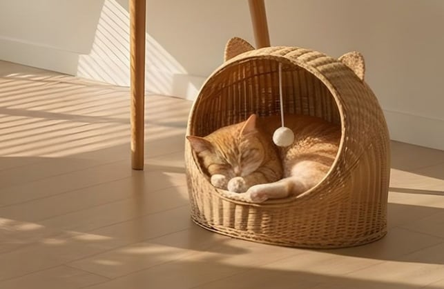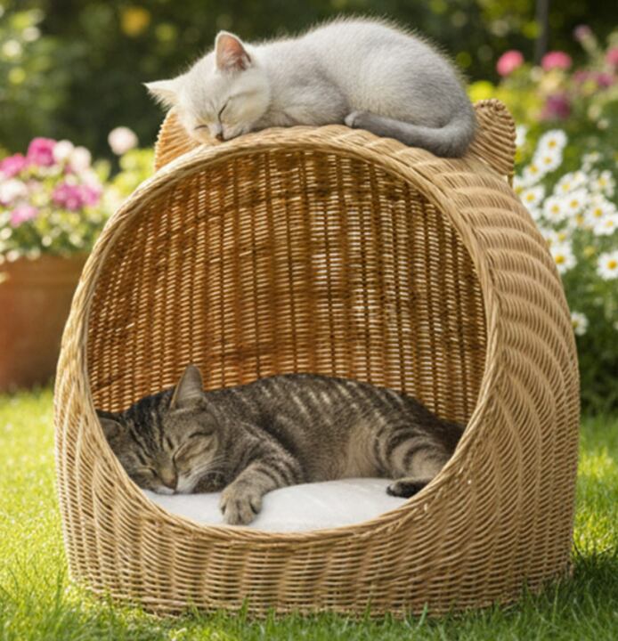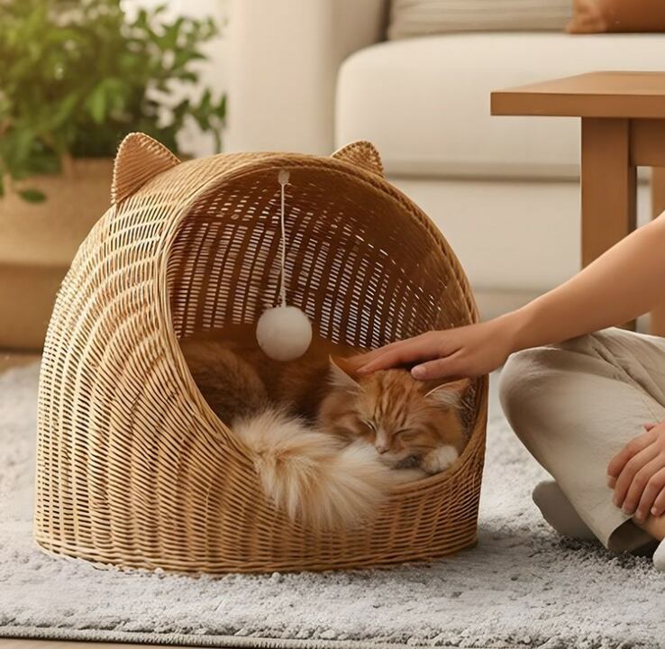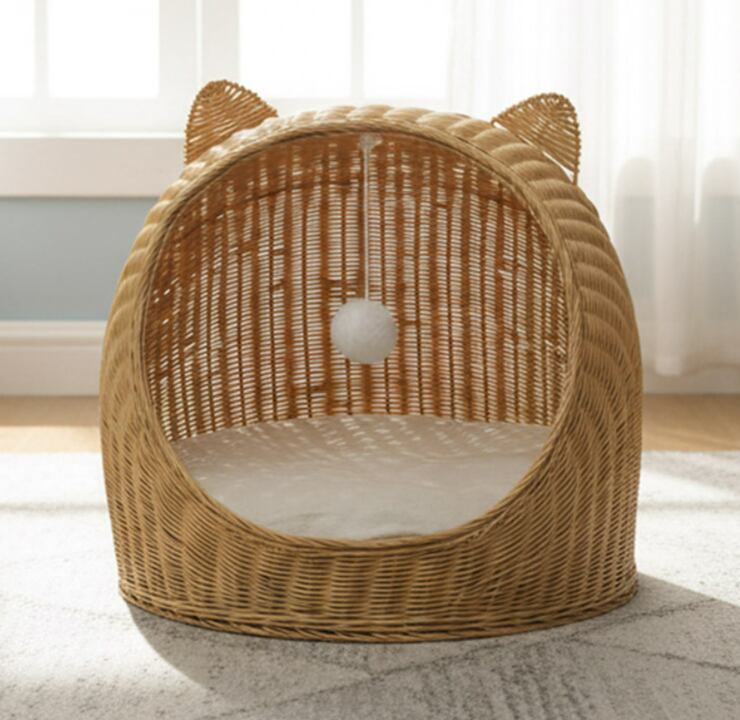 ナチュラルな風合いが魅力のラタン製ペットハウスで、愛犬・愛猫に癒しの空間を提供します。