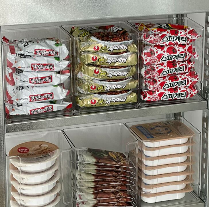 ・ラーメン・レトルト整理に最適:袋麺やパック食品を立てて収納でき、取り出しやすさも抜群です。