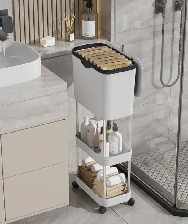 キッチンや浴室、リビングの隙間を有効活用できる、スリムで便利な3段収納棚です。