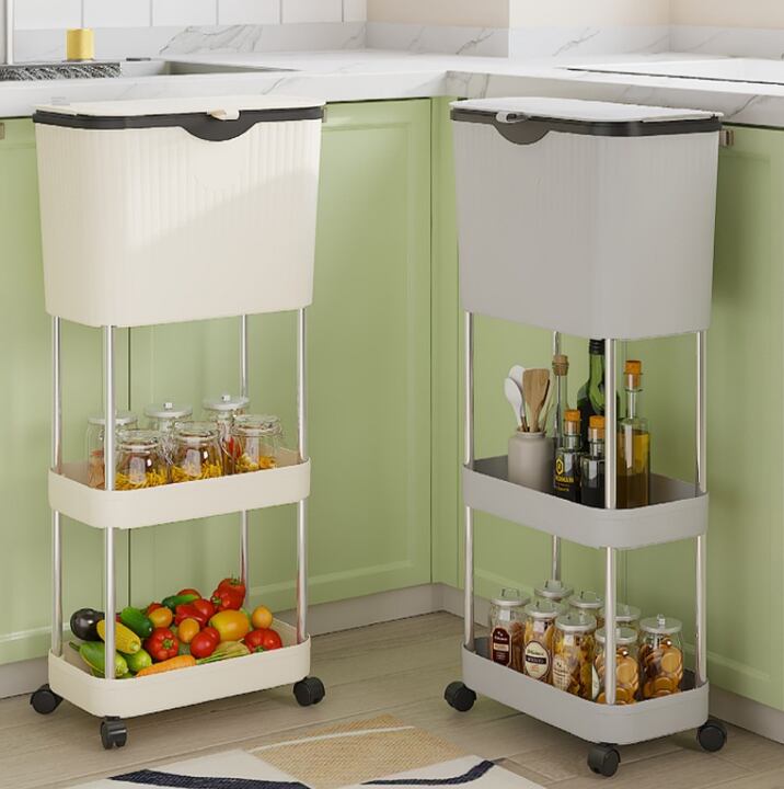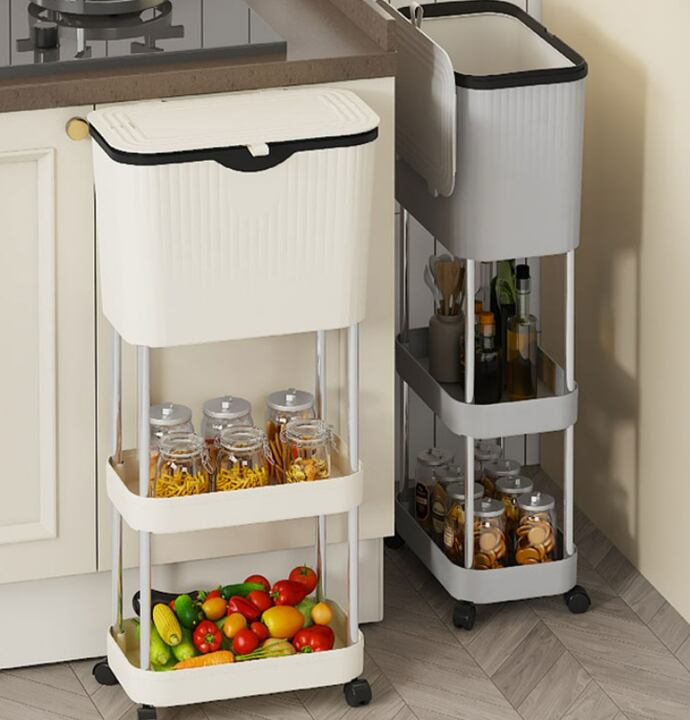・1段目はフタ付きでゴミ箱として利用可能:食品ゴミや生活ごみを目隠ししながら清潔に収納できます。