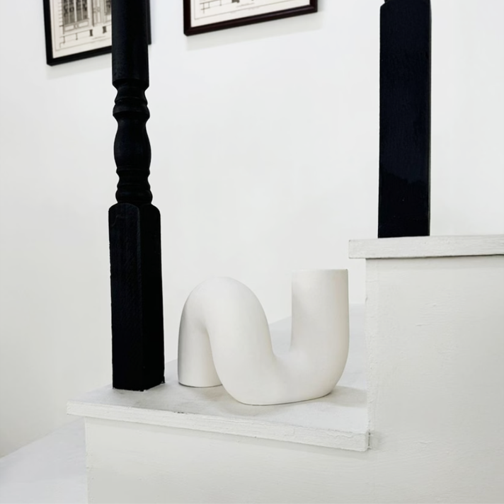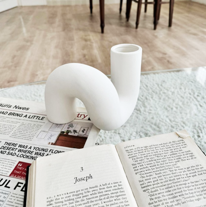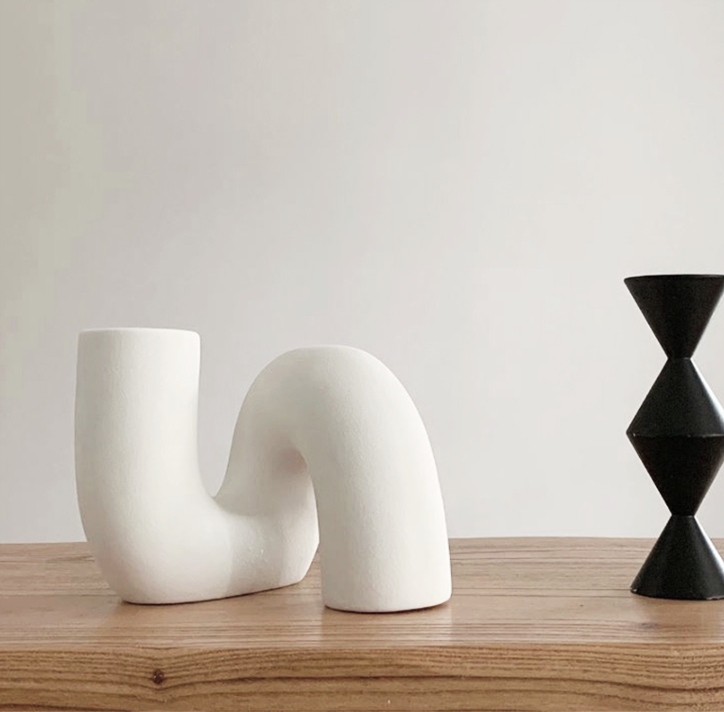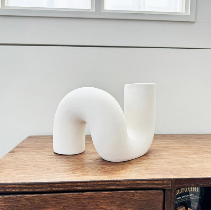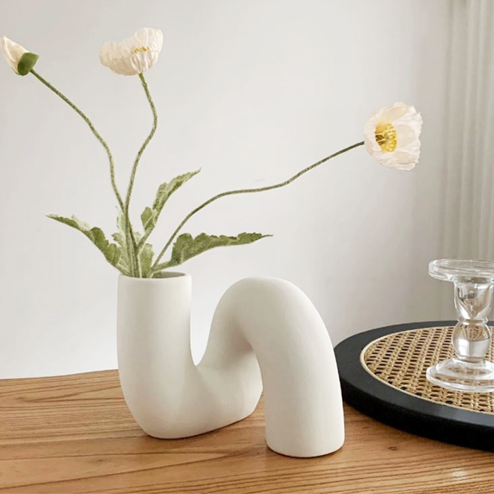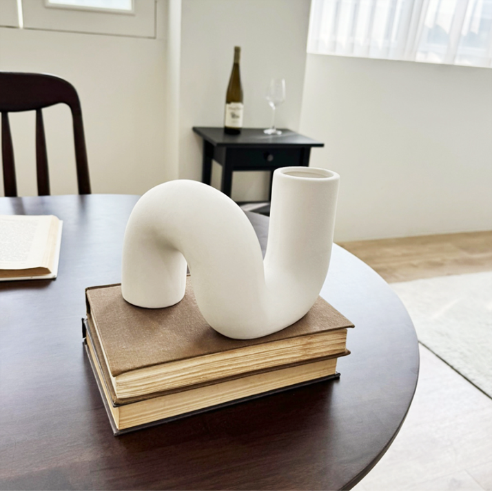 柔らかな曲線が美しい、ツイストデザインのセラミック花瓶。